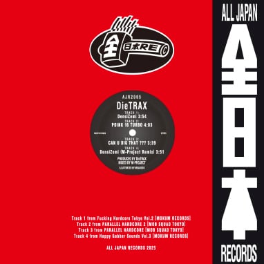 ガバの総本山MOKUMのコンピに収録されたDieTRAXのセミチューンがシングルとなってM-PROJECTリミックス入りで再登場!過去にパラレルハードコアに収録された2曲もコンパイル。ジャケットはDieイチ推しの自作シール作家モジャイドス氏の書き下ろし!もちろん48シール入り。